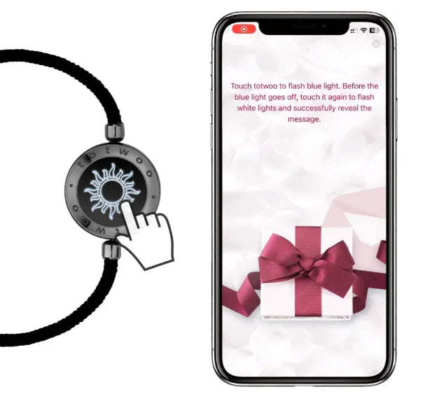 Envía cartas de amor por la app. Toca la pulsera para revelarlas.